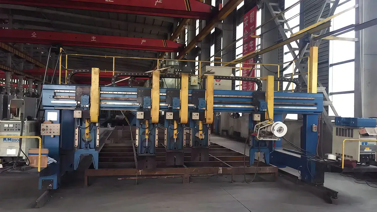 Multi-Head U-Rib Welding MachineAfter assembly, the deck panel unit is fixed on a welding platform with an adjustable flipping angle. A mechanical seam-tracking system keeps each welding torch aligned with the weld seam, while the gantry travels with variable-frequency stepless speed control to weld both sides of multiple U-ribs in sequence. Depending on production requirements, the welding process can be configured for either MIG welding or SAW. The welding machine can also be designed as an anti-deformation fixture or as a flat working table.
