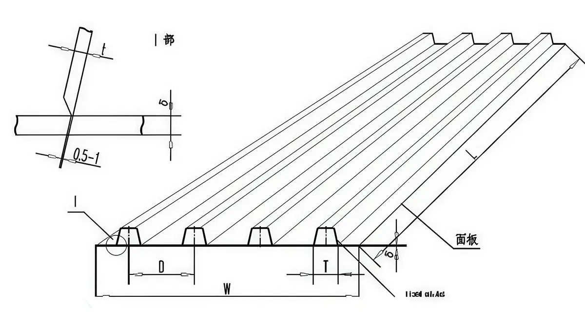 Bridge deck U-rib welding lines are used to produce bridge deck panel units for large steel bridge projects, where production volume is high, delivery schedules are tight, and both forming and welding quality need to be kept under close control. As demand for this type of bridge fabrication continues to grow, automated production has become increasingly important. Developed for bridge deck U-rib production, this structural steel welding line can carry out the full automated process from raw material loading and forming to welding and finished U-rib panel output. These production lines have already been supplied to several bridge manufacturers in China, including Shanhaiguan Bridge Group, Wuchuan Shipbuilding Industry, ZPMC, and Zhongtai Bridge Steel Structure (ZTSS). The structure of a typical bridge deck panel unit is shown below.
