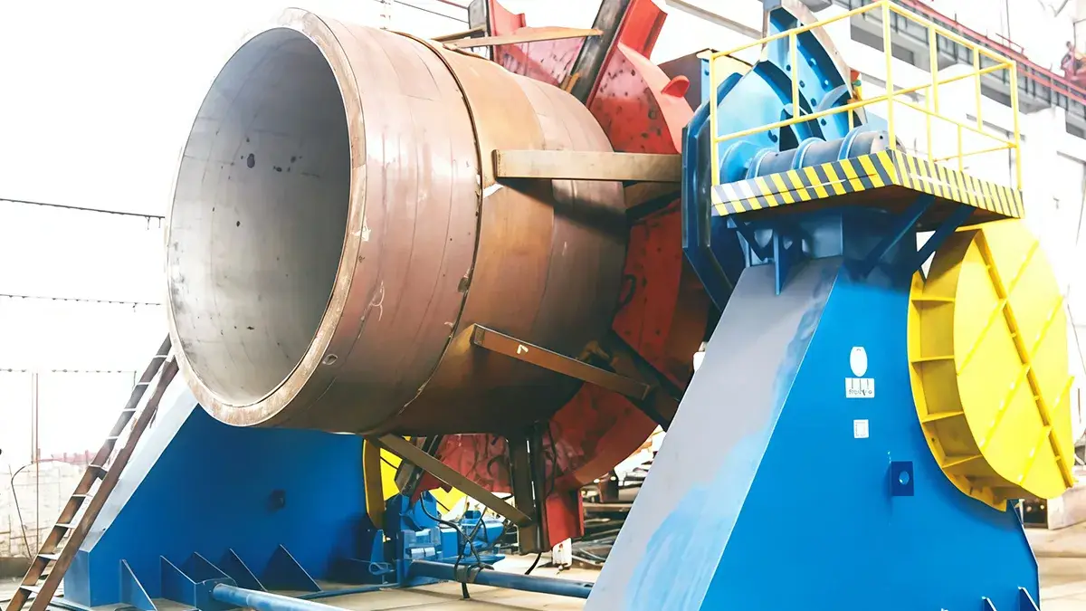 Cradle welding positioners are heavy-duty machines that support workpieces in a secure cradle, allowing them to rotate and tilt during welding or assembly. They make it easier to access different areas of the workpiece safely and efficiently, and the rotation and tilting movements are controlled to position the part exactly where it’s needed for welding.