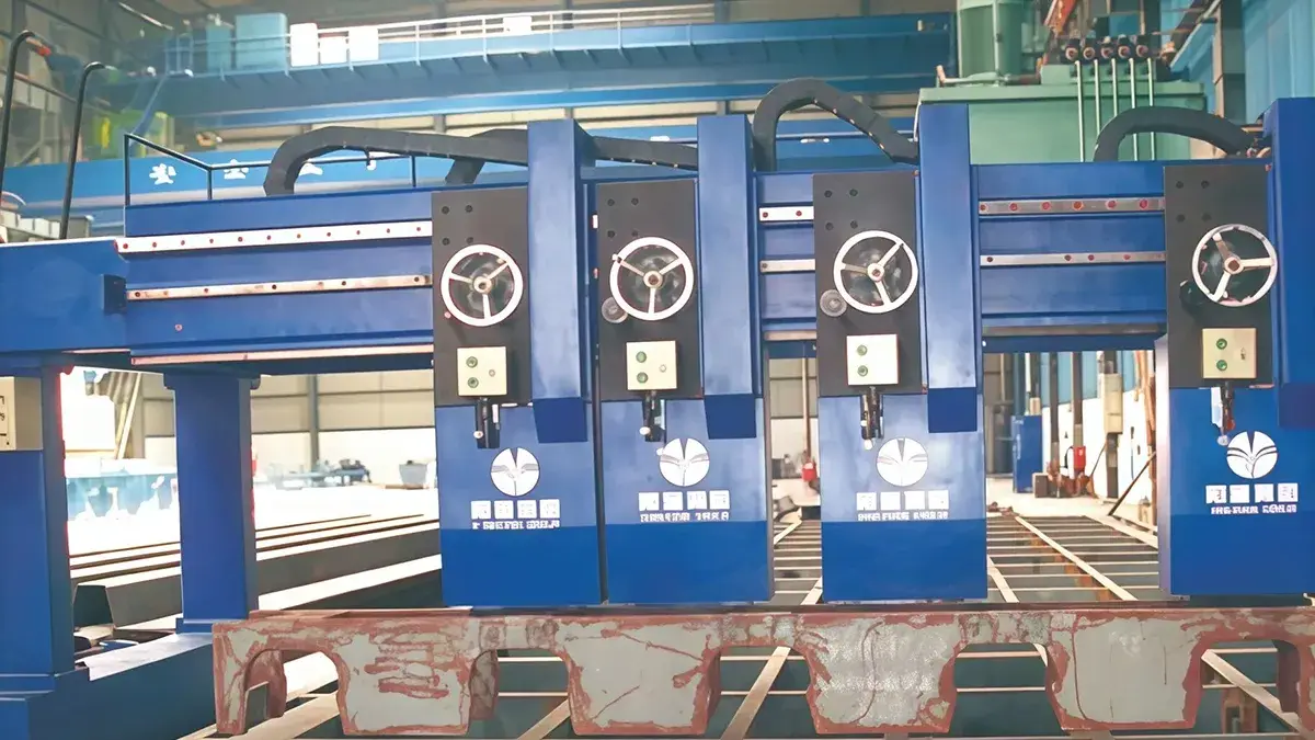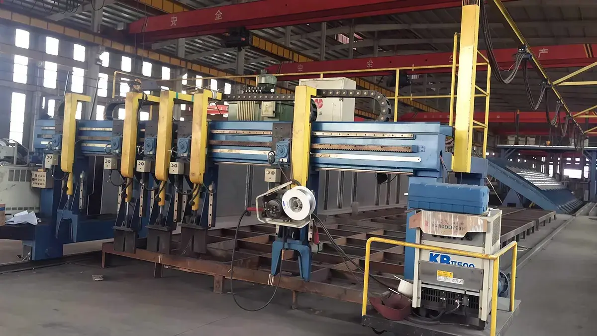 Multi-Head U-Rib Welding MachineAfter assembly, the deck panel unit is fixed on a welding platform with an adjustable flipping angle. A mechanical seam-tracking system keeps each welding torch aligned with the weld seam, while the gantry travels with variable-frequency stepless speed control to weld both sides of multiple U-ribs in sequence. Depending on production requirements, the welding process can be configured for either MIG welding or SAW. The welding machine can also be designed as an anti-deformation fixture or as a flat working table.